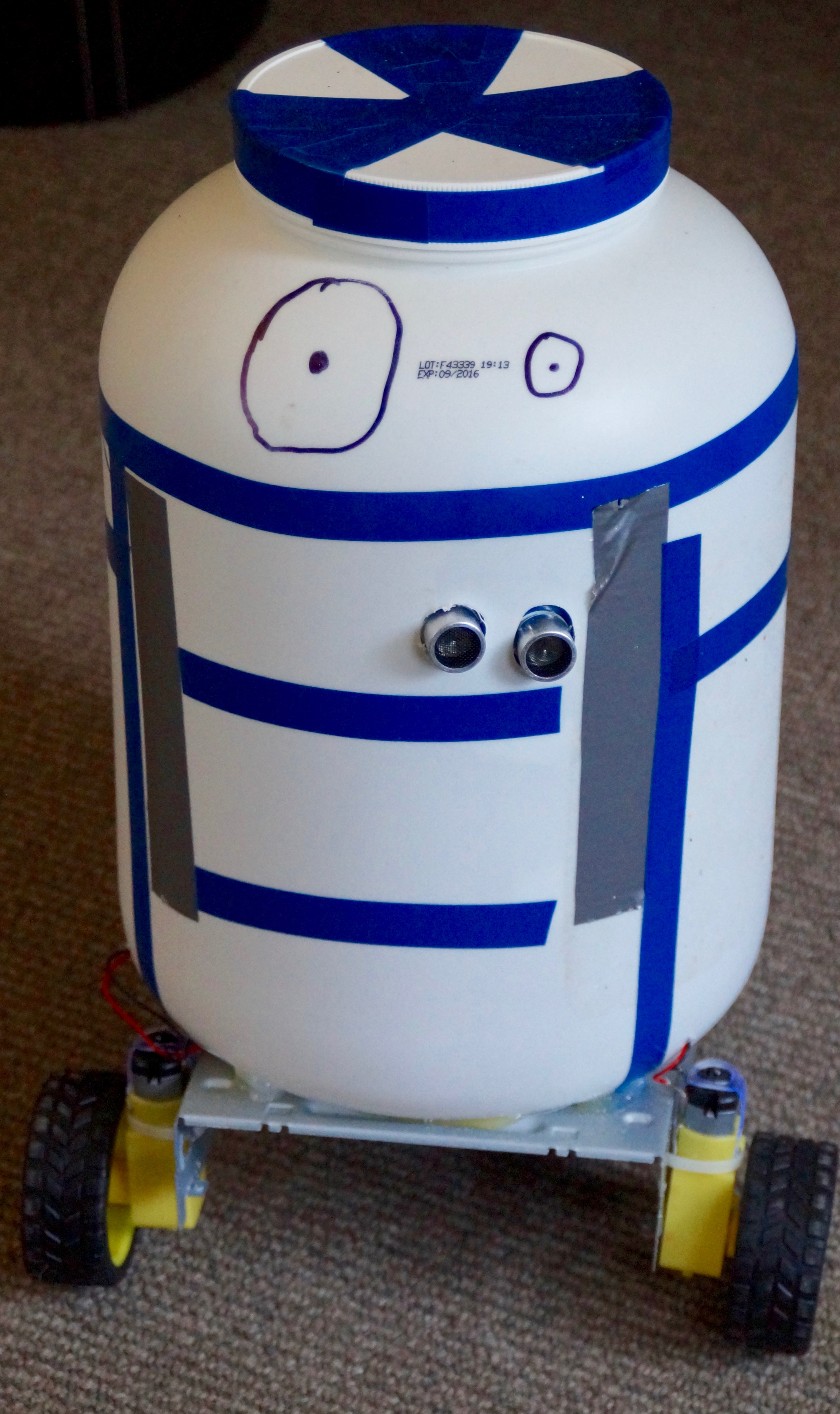 Dit is een project om een kleine versie te maken van R2D2. In de eerste fase heel simpel om te zorgen dat deze vooruit kan rijden en kan ‘zien’.